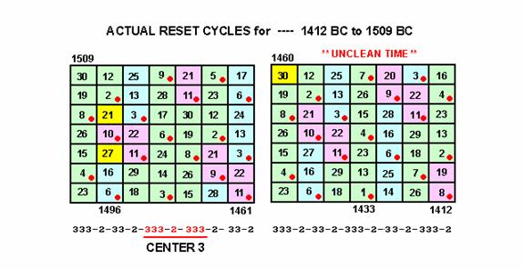 If we had a long run of time, showing Resets in front of us, that cover from 1100 to 1500 B.C.E. we could isolate the number that show two Resets in just two years, both of which are in Unclean Time. We then could take those available possibilities and compare them to the actual Bible Time Line story. With this accomplished, we would find only one real choice.