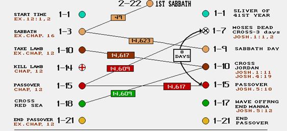 Fact #3 connects the Weekly Sabbath day that was given in the 1st Year of the Wilderness with its correct corresponding location in the 41st Year. It also show's what day of the week they crossed the Jordan River. Notice that in the Figure. They crossed on the first day of the week!